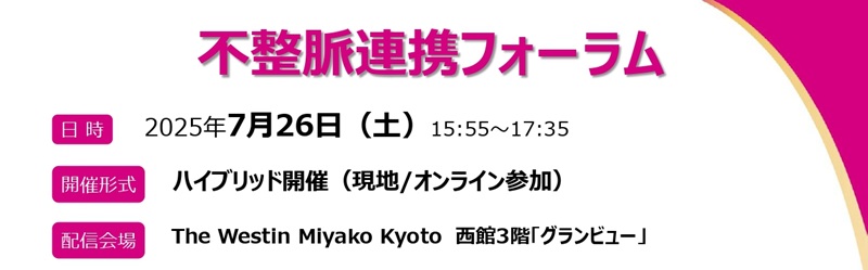 佐藤大祐医師が「不整脈連携フォーラム」にて特別講演・演者を務めました 2025 7/26 不整脈センター(実績) 2025.07.26 佐藤大祐医師が「不整脈連携フォーラム」にて特別講演・演者を務めました。 演者:佐藤大祐医師 学会/研究会:不整脈連携フォーラム 不整脈センター(実績) 各種実績(各診療科用) 佐藤大祐医師が「脳心関連WEBセミナー in 鹿児島」にて演者を務めました WEBサイトリニューアルのお知らせ
